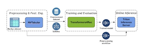 Fig. 4: NVIDIA Merlin orchestration of the main features of a recommendation system [6]